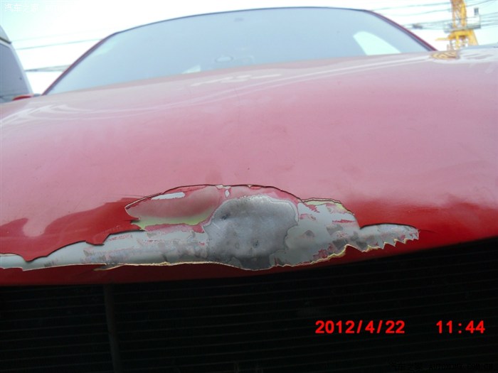 以前刮得腻子都撞掉了 机舱盖变形了 师傅还弄了弄才好点 刚开始都卷起来了