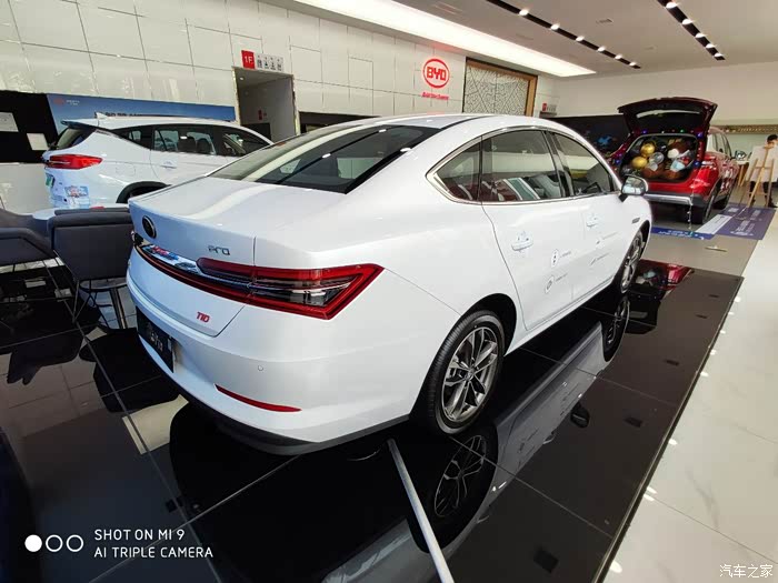 4.我小表弟也一直在网上浏览关注十万这个级别的车型,其中就有比亚迪的车型,在网上看到由奥迪前设计总监艾格设计的这一套前脸感觉非常的有气势,这不趁着是星期天就过来比亚迪销售店看车啦。