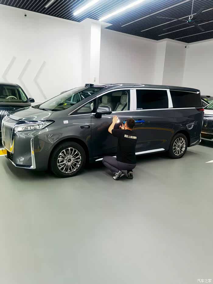 7月31日,下雨一个人去提车(打车打了半小时才打到),江苏省南京市雨花台交付中心(交付中心照片不小心删了就不发了),先验车(贴膜店派人来给我验的省心),发现了副驾驶后面电动侧门最外层的透明漆里面有个小尘点没法处理的,我也没纠结它本身灰色车,不用灯怼着看不出来的。左侧后轮保险杠最下面有点漆面拉丝的尖锐感,看了看其他待交付的车,只有灰色那个位置有点尖锐膈手,其他颜色那边都还好,可能是灰色漆的问题,验车的小哥说贴膜时候给我处理下,不影响贴车衣,我也没啥可纠结的了,验车完了小哥先回贴膜店了。