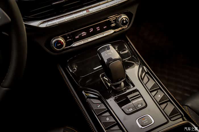 然后中控台、档把周围和扶手盒的缝线都进行了一个与车身外观相同的配色,