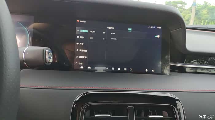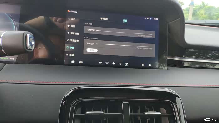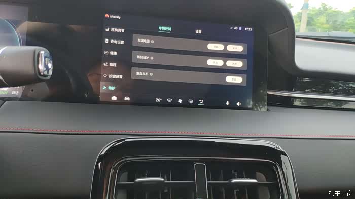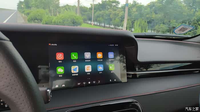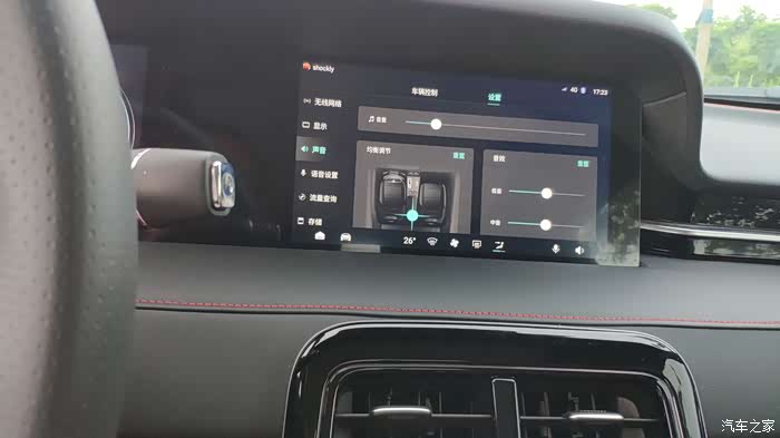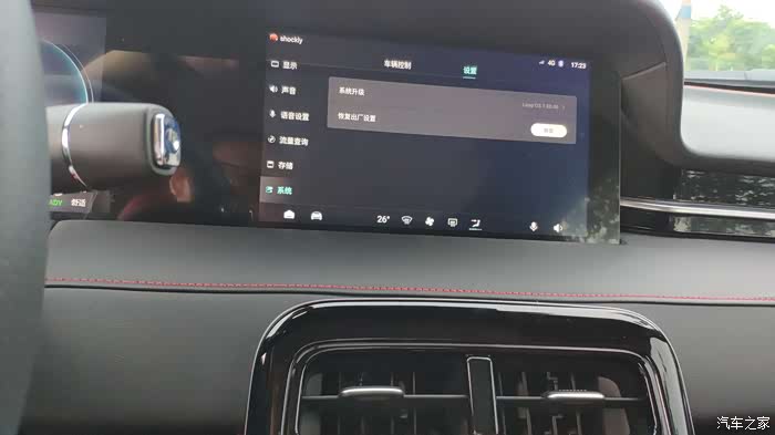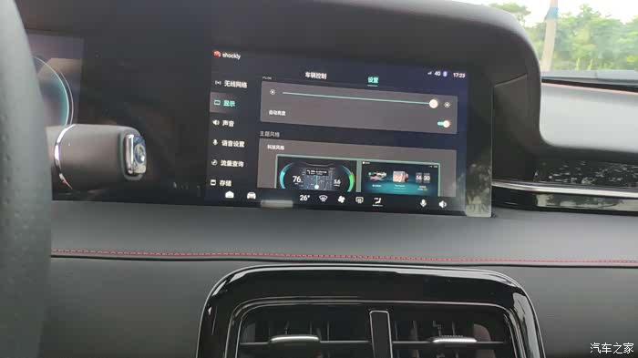 中控界面,舍不得撕掉出厂的膜呀,所以也不好评价反光问题,等有贴膜的时候,换上一个屏幕膜。液晶屏显示效果很细腻,画质很饱满。中间使用过程中有软件问题,我也反馈给厂家了,希望尽快解决软件问题。