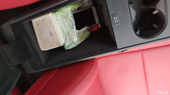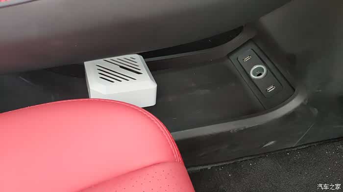 中央扶手箱下面还有储物格,差点忘记了,两个USB口子和一个点烟口。这个点烟口对抽烟的人应该会很头疼,还好我不抽烟。