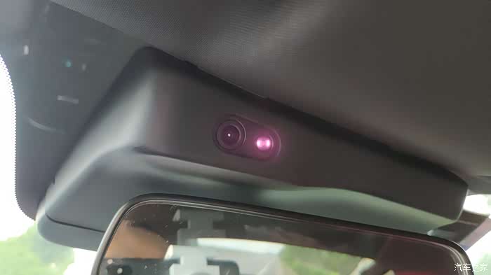 车内摄像头,旁边发红色光的,肉眼看不到,手机拍照才能感觉到,是红外夜视的。这个摄像头就是我刚才说的,主要是用来人脸识别,犯困提醒等功能。