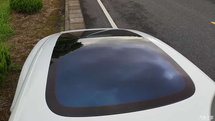 大天窗,我是贴了膜的,看上去更黑,更有美感。小小的遗憾的是天窗不能打开。大家是否有注意到两边是没有大黑条的,车顶和车身侧部的焊接位置。经常看汽车之家的人应该知道,德系车中大众系列的车上面两边都是没有黑条的,得益于对这个车顶两边的全焊接,密封性相对很好,而且对这个车的车身稳定性肯定有帮助。日系车甚至很多国产车,都会有大黑条。因为车顶两边是点焊接的方式,密封性不好,需要黑胶体做密封。so,这种车顶既美观,又起到安全作用。当然成本也会上去。