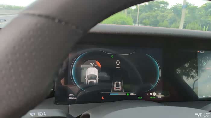 主驾角度,方向盘带多功能。仪表盘和中控屏都是液晶显示的,中控待触摸,仪表盘不带。我比较喜欢实体按钮,直接操作。当然你也可以使用语音助手小零。小零你可以在放线盘上的按钮唤醒,也可以直接喊“你好,小零”。不过我用语音唤醒小零这个功能已经关闭了,原因是它无缘无故会被唤醒,很烦,这个功能等后续软件优化后再启动。反正我实体按钮也可以唤醒它为我服务。语音识别率很高,基本的操作都能做,如控制空调,播放音乐等。多功能方向盘其他的功能分别是定速巡航,低速跟车(该功能年底开放),途记----10s的短视频记录(这个功能我用来拍录制一些沿途的风景,然后分享),控制音量(控制定速的速度,复用键),蓝牙电话,功能键,返回键,功能切换键。
