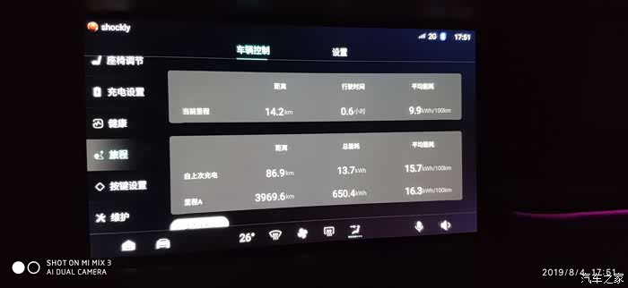 这个是刚才发过的照片,3969.6公里了,这个数据真实有效吧,16.3个电,夏天都是开空调的,特别是大中午,空调开到最大。不过貌似有点感觉空调不给力,自己百度了一下,电车大夏天需要把一部分冷气给电池降温。其他新能源车子也可以交流一下是不是也是这样的情况。