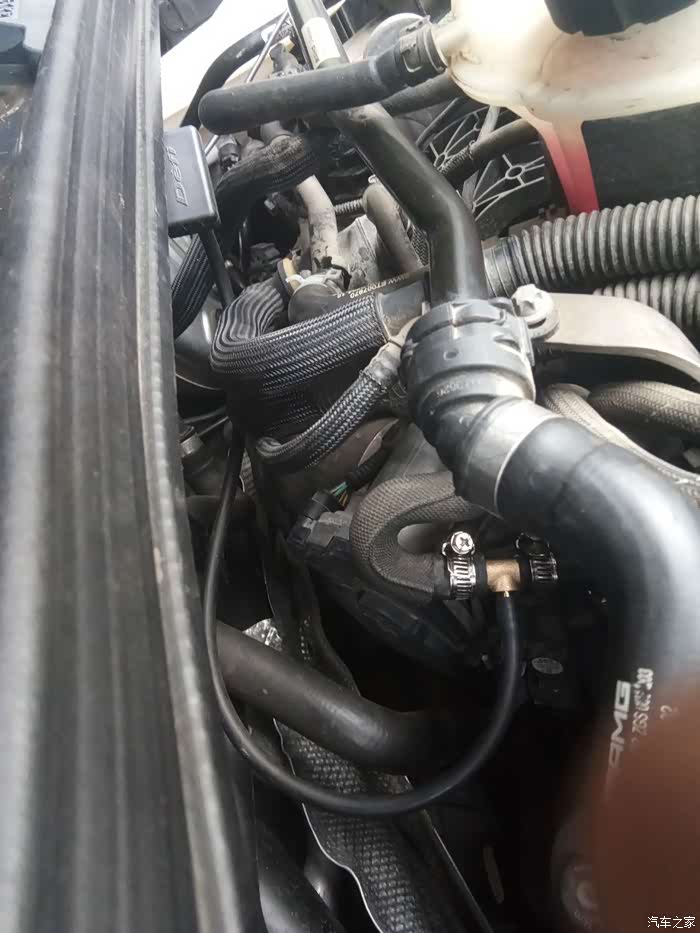 接的真空管位置,开始先接的排气阀门的那个管子,以为都一样,结果只显示负压。后来想了下原来奥迪车上的真空管位置,是在进气歧管上走到发动机上的,于是找到了这根正确的管子。买了个大小头的三通和一段胶管。