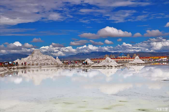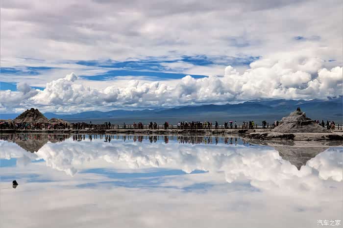 为了能参观完今天的两大湖,我们早上五点就准时出发了,上午十点抵达天空之境--茶卡盐湖,别称茶卡或达布逊淖尔,是位于青海省海西蒙古族藏族自治州乌兰县茶卡镇附近的一个盐湖。"茶卡"是藏语,意即盐池,也就是青海的盐;"达布逊淖尔"是蒙古语,也是盐湖之意,景色确实不错,可惜人太多了,每个盐湖里的倒影全是周边挤满的人,正值中午火辣辣的太阳晒的难受兜了一圈就离开了。