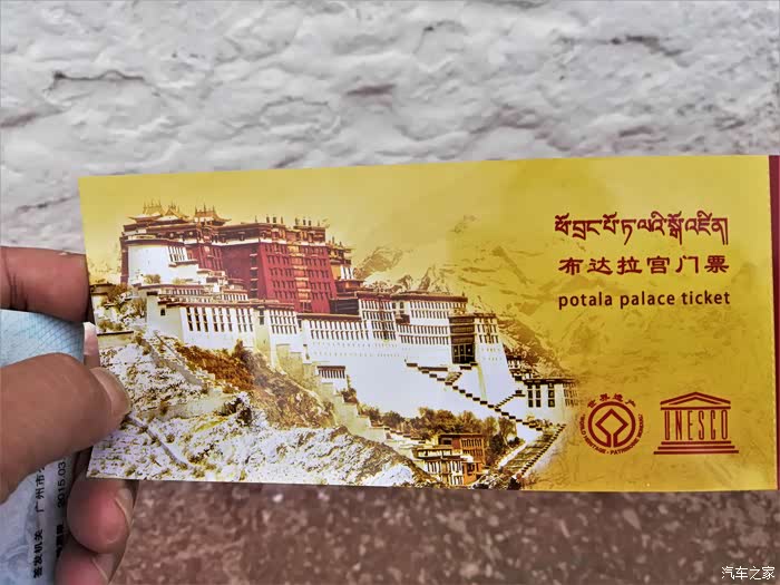 今天我们最终到达了此次西藏行的重头戏-参观布达拉宫。一个多月前就听说布达拉宫的门票特别难买,一直到参观的前几天门票还没有着落,真是堪比春运火车票,费尽周折最后在同程买的差不多500块钱一张布达拉宫的门票。上午十点旅行团的导游让我们在东广场集合带进游布达拉宫,远远的看到了布达拉宫,一阵激动涌上心头,但又觉得不真实。在拉萨的时候总觉得不是那么真实,平日里在电视或者五十元纸币上看到的布达位宫就在我的眼前了,我现在就站在西藏的土地上,站在拉萨的大街上,心里油然而生出一种朝圣者般的敬畏感。布达拉宫,它最初是吐蕃王朝赞普松赞干布为迎娶尺尊公主和文成公主而建,而后经1300余年的不断修建,才得以有今日这般雄伟面貌。布宫主要由红宫和白宫组成,中间最高的红宫是举行宗教仪式的重要场所,周围的白宫主要为达赖喇嘛的生活和政治活动场所。布宫还有一些附属建筑,包括山下的雪城和后面的宗角禄康公园等。