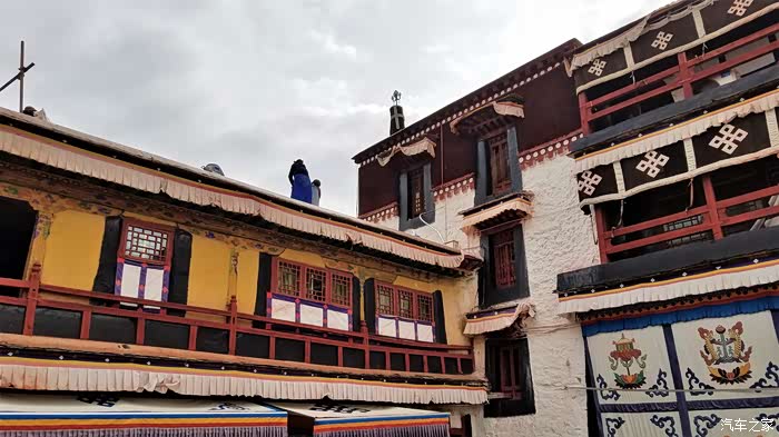 布达拉宫的参观线路是固定的,只能沿着旅行线路指导牌走,为一条线的浏览方式。开放的殿堂经常会有变化,但最重要的几个宫殿基本每天都开放。如此古老而又神秘。千年不断的添加建造形成了如此复杂而又完整的内部格局。听完导游近一个小时的讲解,虽说听的不是很懂,但当真正站在这座宏伟建筑上时心里无比感慨。