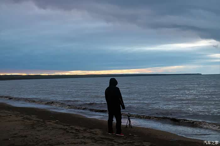 听说青海湖在这里看日出非常漂亮,早上五点半就起床了,在湖边架好三角架,看着远处湖水与天连接的地方,可惜等到七点半太阳一直躲在乌云后面不肯露脸。然后我们就依依不舍的离开了。经过一天一夜的长途跋涉于第二天早晨6点左右,终于画完一圈又回到了成都。