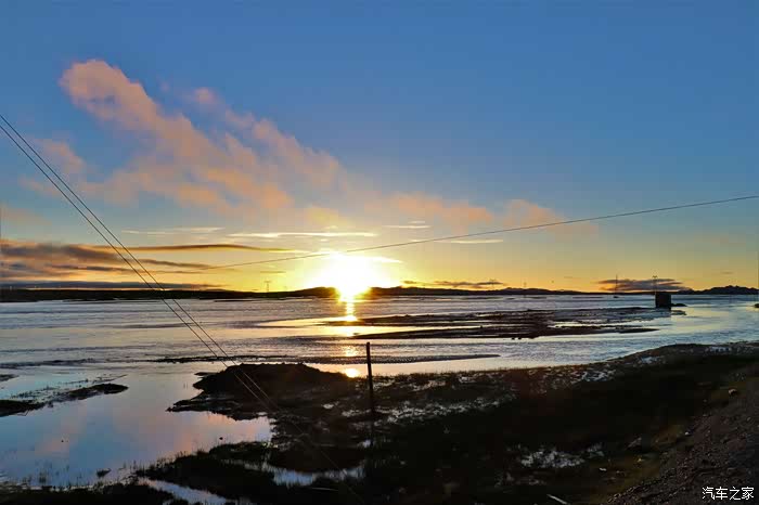从那曲出来就沿着青藏线继续向前驾驶去,中途路过唐古拉山,唐古拉山口是长江的发源地,这里有着世界上海拔最高的公路。唐古拉山的主峰格拉丹东,海拔6000多米,是长江的源头。它脚下的可可西里无人区,是藏羚羊等濒危野生动物的怡然自得的牧场。四、五月间的高原,江河凝缩成晶莹的冰川,浪花沉默成无言的冰雕,曾经呼啸肆虐,湍急奔腾的江河静静地安眠着。晚上八点多赶到沱沱河,沱沱河位于青海省格尔木市南域唐古拉山镇,是长江源的西源,