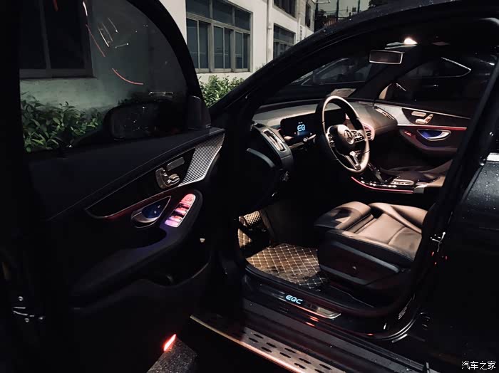 我独自前往4s店试驾,销售解锁车那一刻,EQC前脸的“时空之环”LED贯穿灯带亮起让我一见倾心。坐进车内,有层次的中控设计、精致的用料以及环绕我的氛围灯让我感叹不愧是奔驰。启动EQC,伴随着前灯的灯光秀,车辆缓缓启动,期间我体会到了双层夹胶玻璃带来的静谧。最后机中我心的是车轮轧过减震带的一刻,那个柔软舒适的悬架让我心里想着“就是她了”。