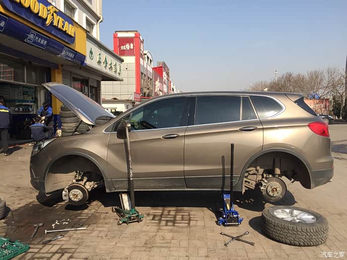 关于升高改装的结论:目前前换簧后加垫块的方法,省钱!稳定性没有问题,但是安装过程过于艰辛、安装后很难完美匹配,会出现异响。但当初并没有昂科威能用的减震、弹簧套装啊,也是无奈。。不过,最近居然看到广州某厂家给昂科威定制了套装,近期准备上车!第二阶段改装效果敬请期待哦~