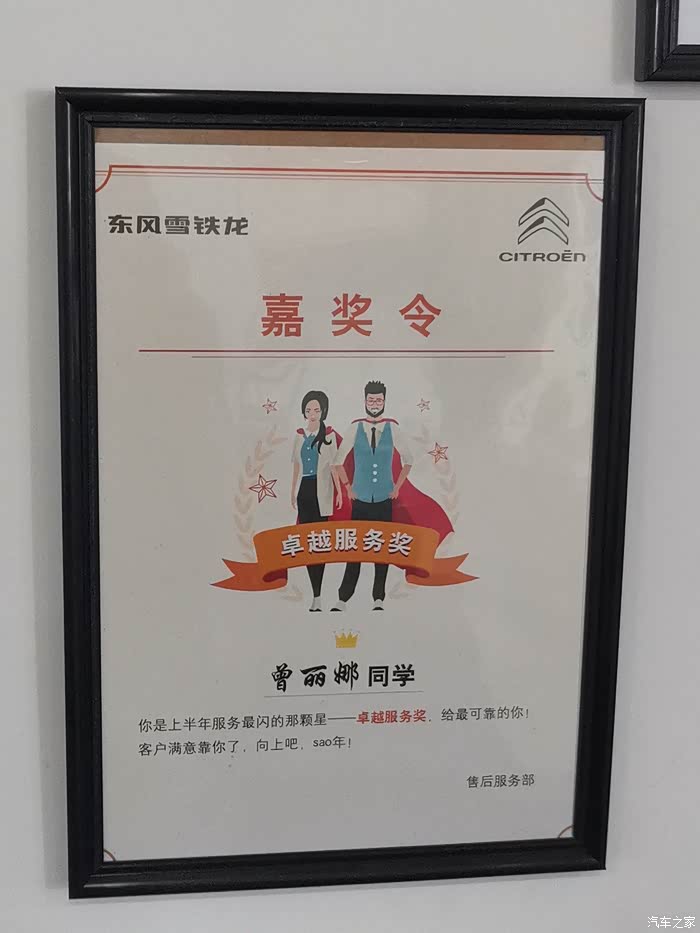 我看着光洁如新爱车,回顾刚才见到墙上挂着的“五心守护”,员工的证书与表扬,还有整洁的车间,干净的地面,真的体会到了雪铁龙的“五心守护”越来越好。神龙公司两网融合后的售后服务更凡尔赛了。