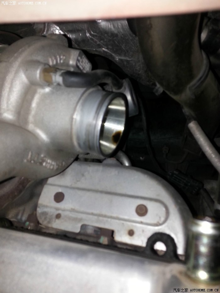 这时候可以看见涡轮了,然后继续把涡轮的进气管拆下: