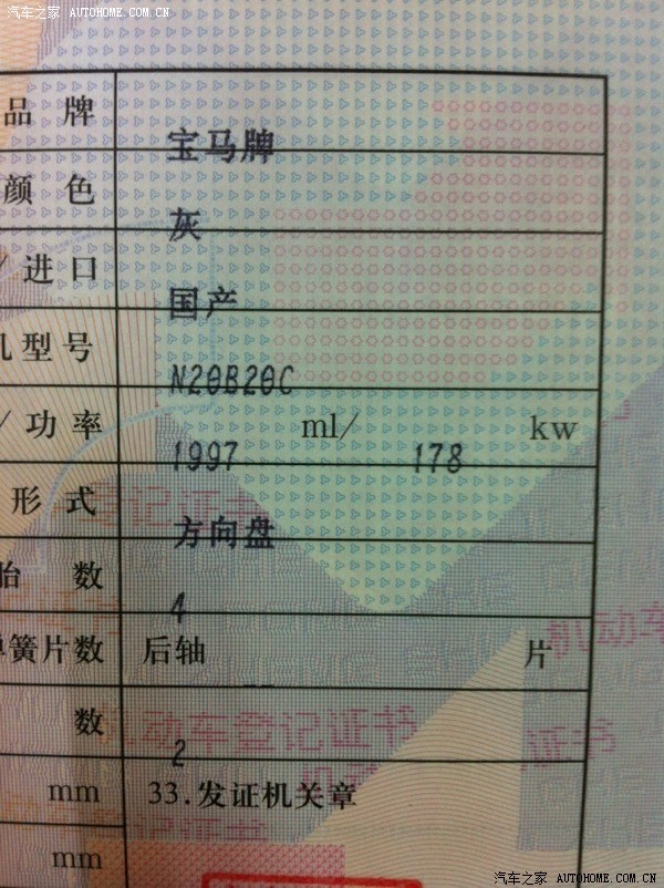 上牌的车主请认真看清楚你们的车辆登记证 上面有一个功率 是178kw 而不是官方的160kw 换成马力大约是242匹 庆祝吧