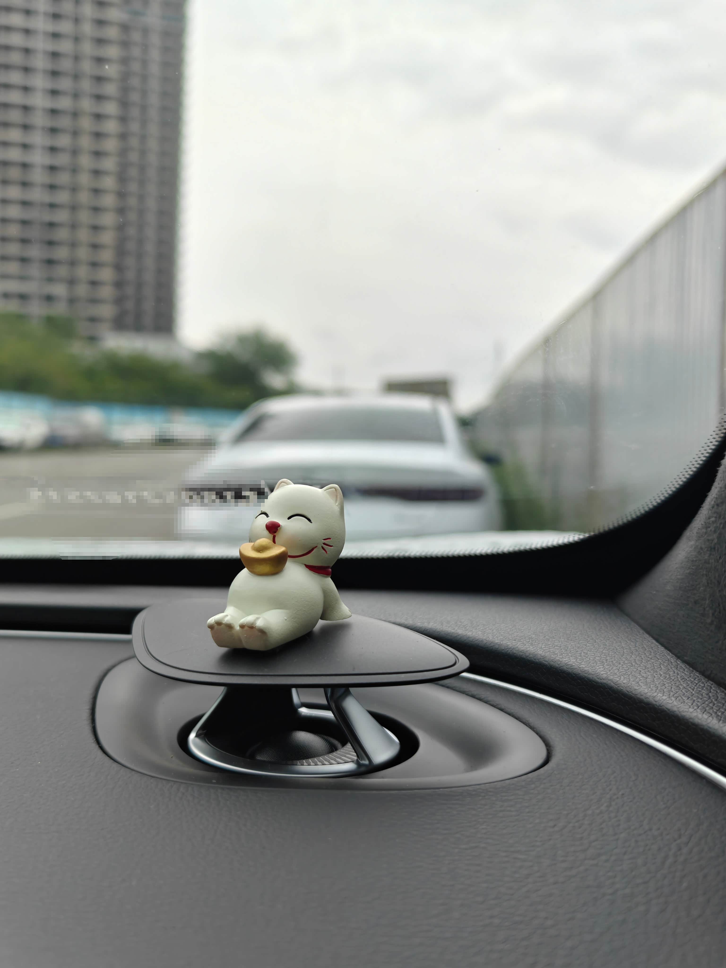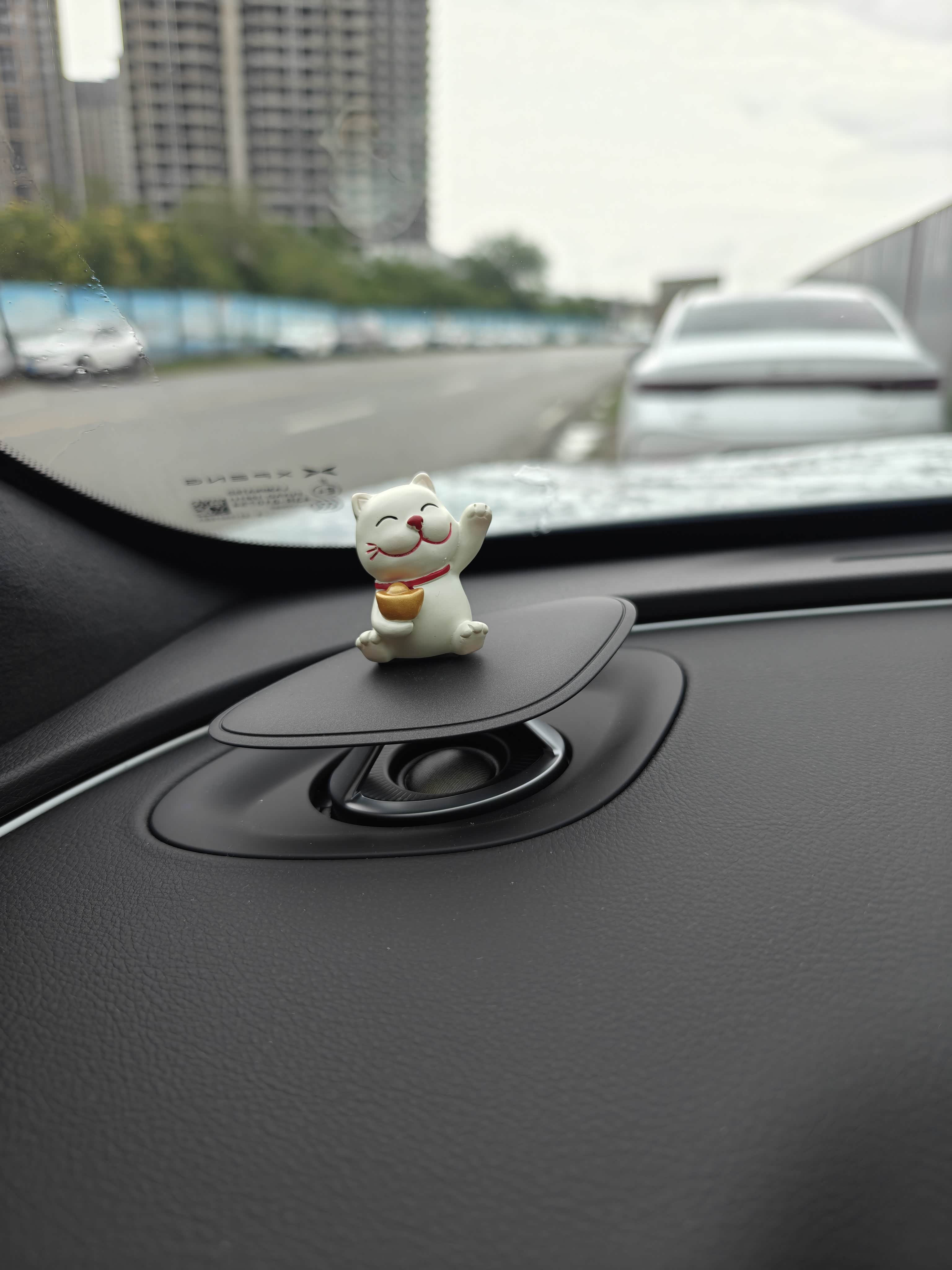 在升降高音头上,我还放了两个小招财猫,下面用3m胶固定的,挺结实,想取下来也简单
