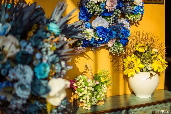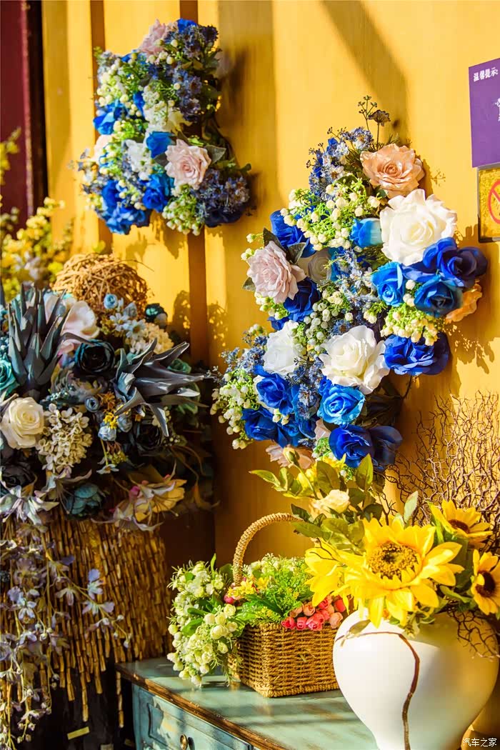 喜舍外面门口就有很多蓝白玫瑰装饰着,让人忍不住停留驻足。