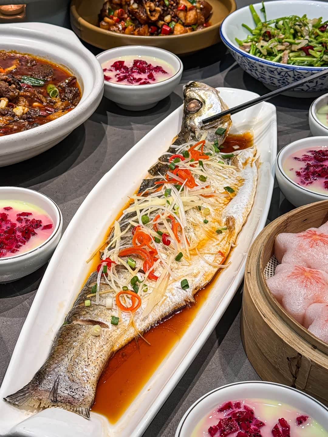 18:00 转战万松园美食街。本地人推荐了“巴厘龙虾”,油焖大虾配凉面,麻辣鲜香;隔壁的“肖记公安牛肉”点了招牌黄骨鱼炖豆腐和干锅泥鳅,人均80元吃到撑。