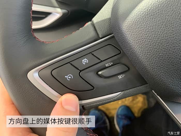 方向盘上方的多功能按键设计很实用,质感也很到位。