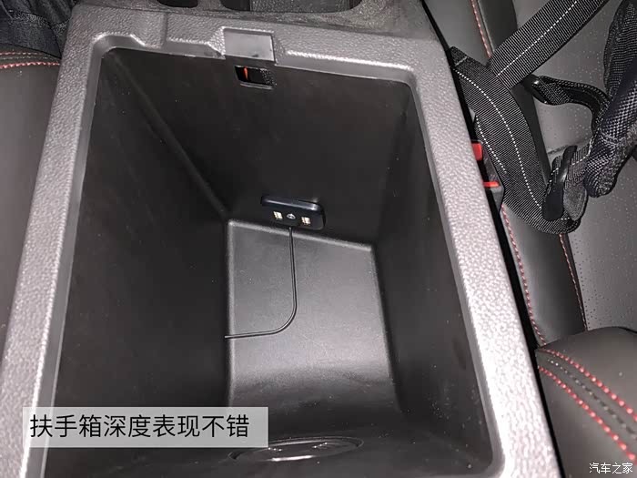 扶手箱内部还有一个空调出风口可以冷冻饮料。另外还有两个USB接口和线槽。对于我和我媳妇这种手机控来说,两个USB接口非常有必要!
