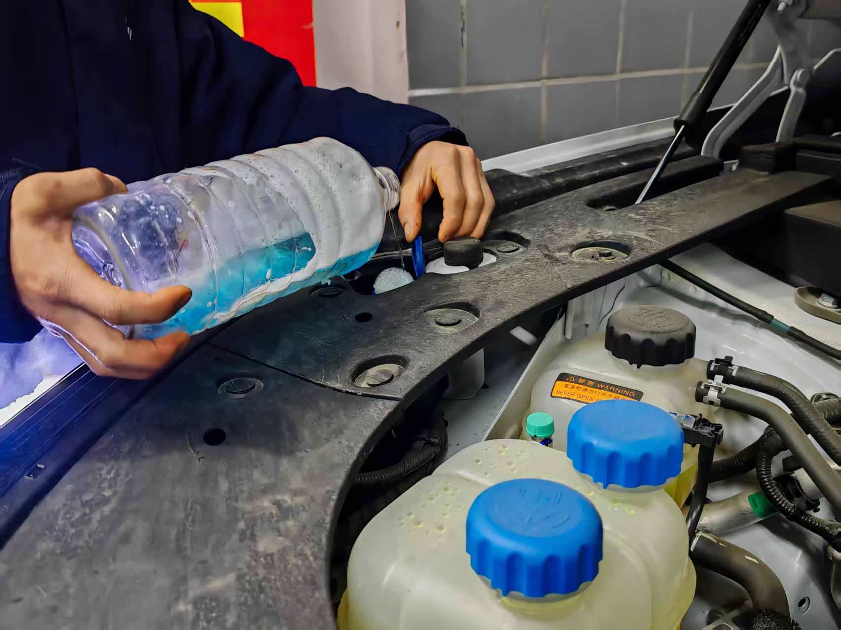 免费加注防冻型玻璃水至满溢线;