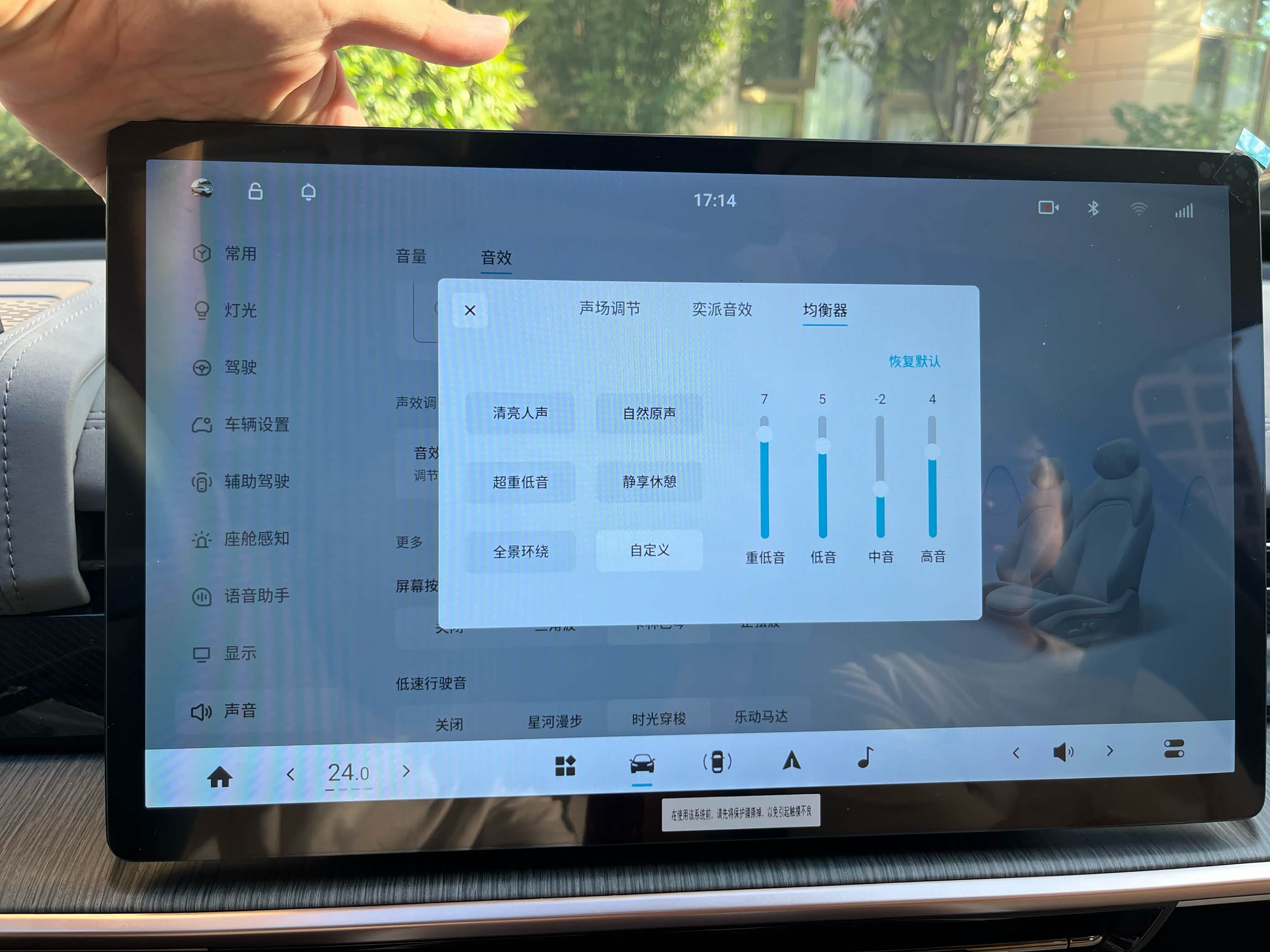 把声场中心点调到“全车居中”,这样不管坐在驾驶位、后排,每个座位听着都均衡,不会声音只往一边跑。音效模式别用默认的“现场”了,换成“音乐厅” ,试过就知道,它对乐器分离度、人声清晰度优化得更到位,尤其是听流行歌、民谣,效果杠杠的。