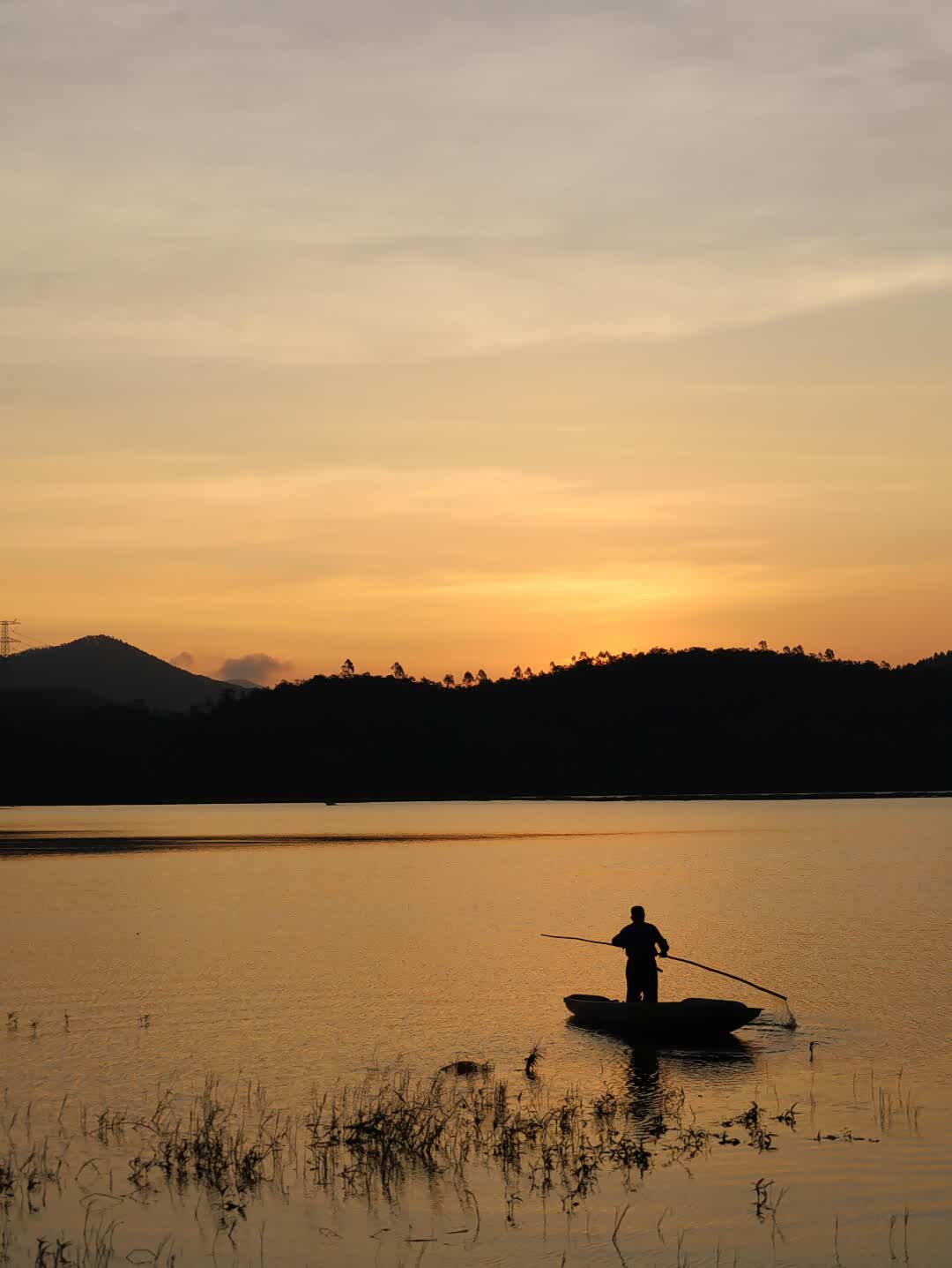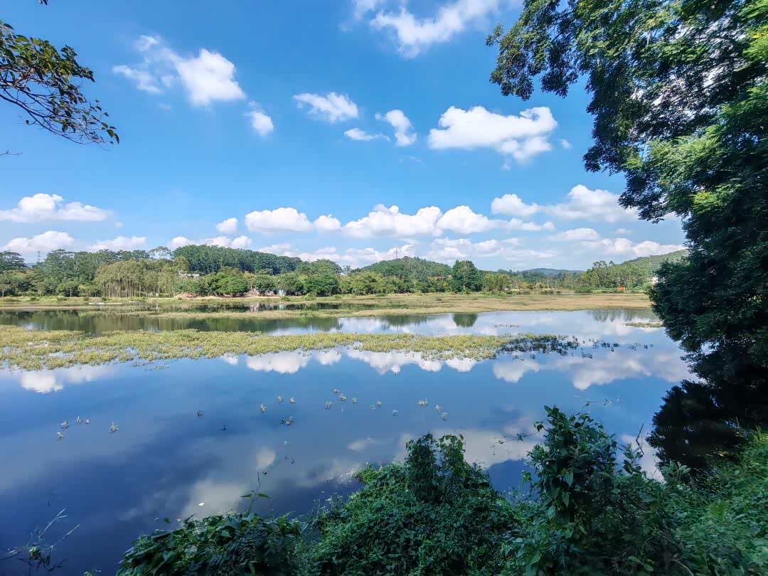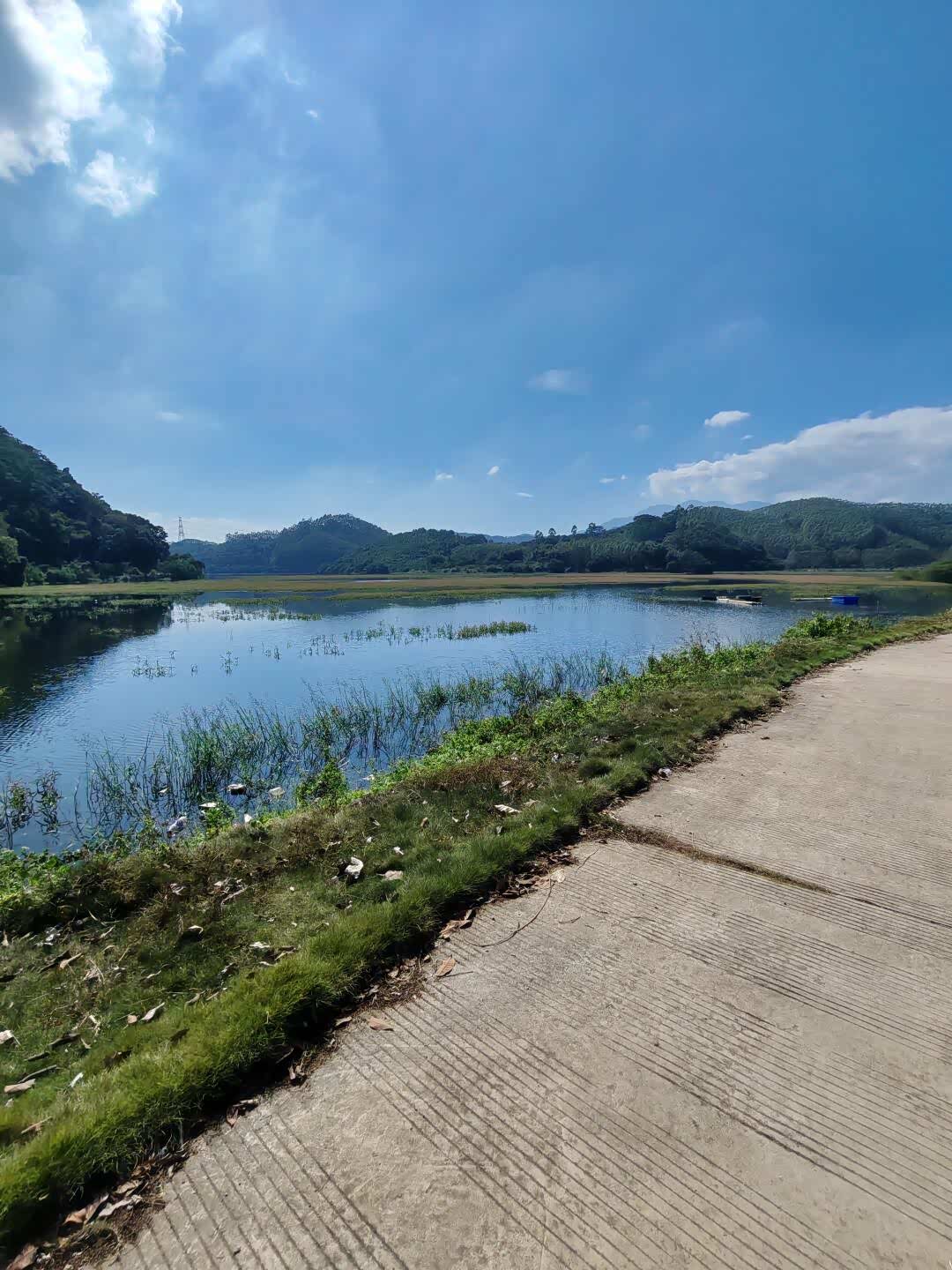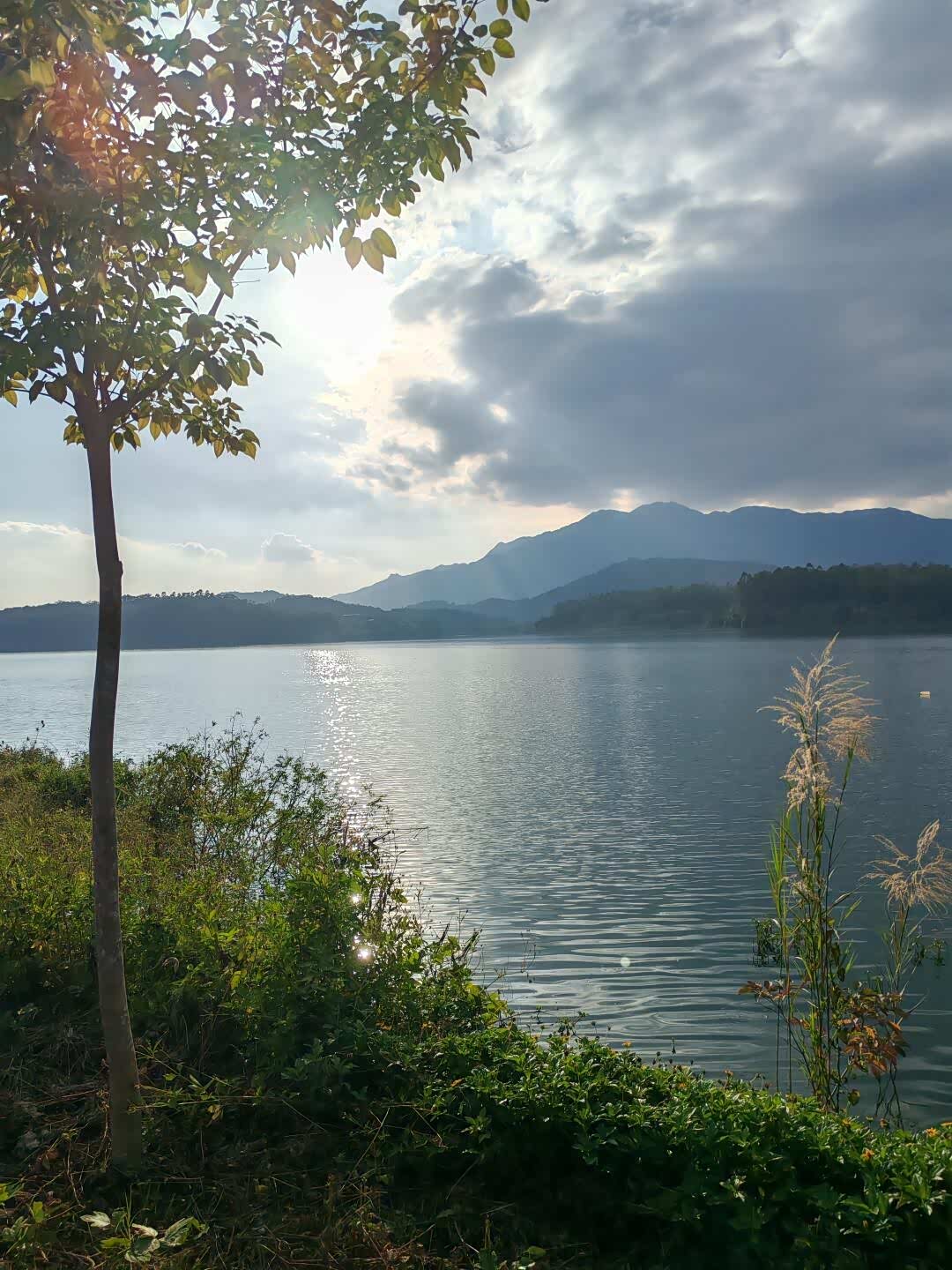 钓鱼的间隙,我陪女儿在湖边散步,湖水清澈,波光粼粼,远处的罗浮山若隐若现,风景格外优美。老婆拿出相机,拍下孩子们欢笑的瞬间,也记录下这湖光山色。商贩路过时,我们买了些小鱼干,嚼起来鲜香有嚼劲,孩子们也很爱吃。儿子虽然没钓上鱼,但看着水面的浮漂,眼神专注,格外认真。中午阳光渐强,我们躲到树荫下休息,吃着零食、聊着天,感受着湖边的清风,格外惬意。