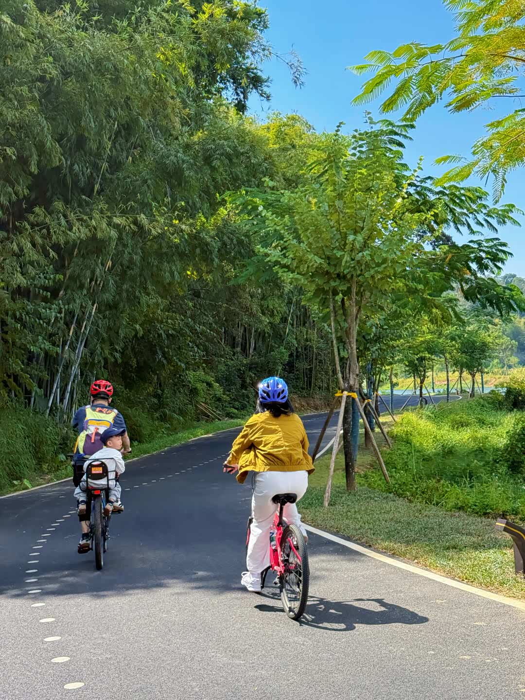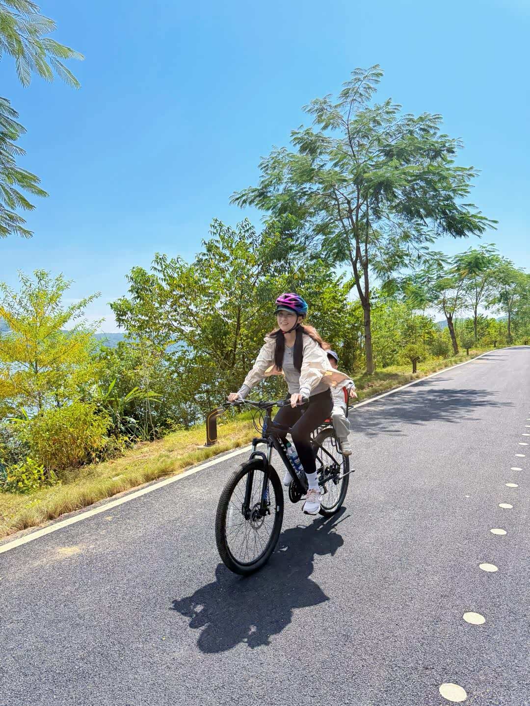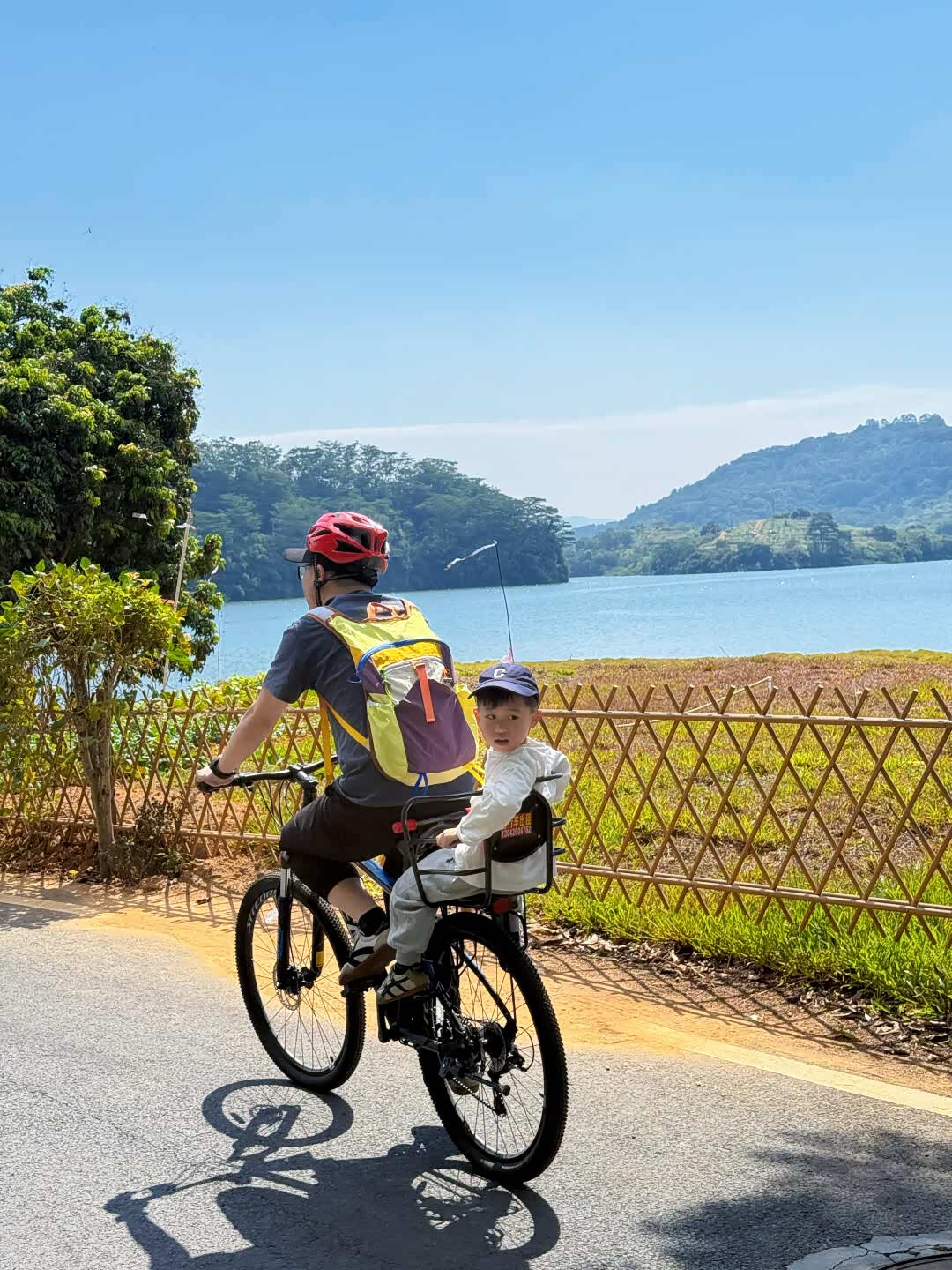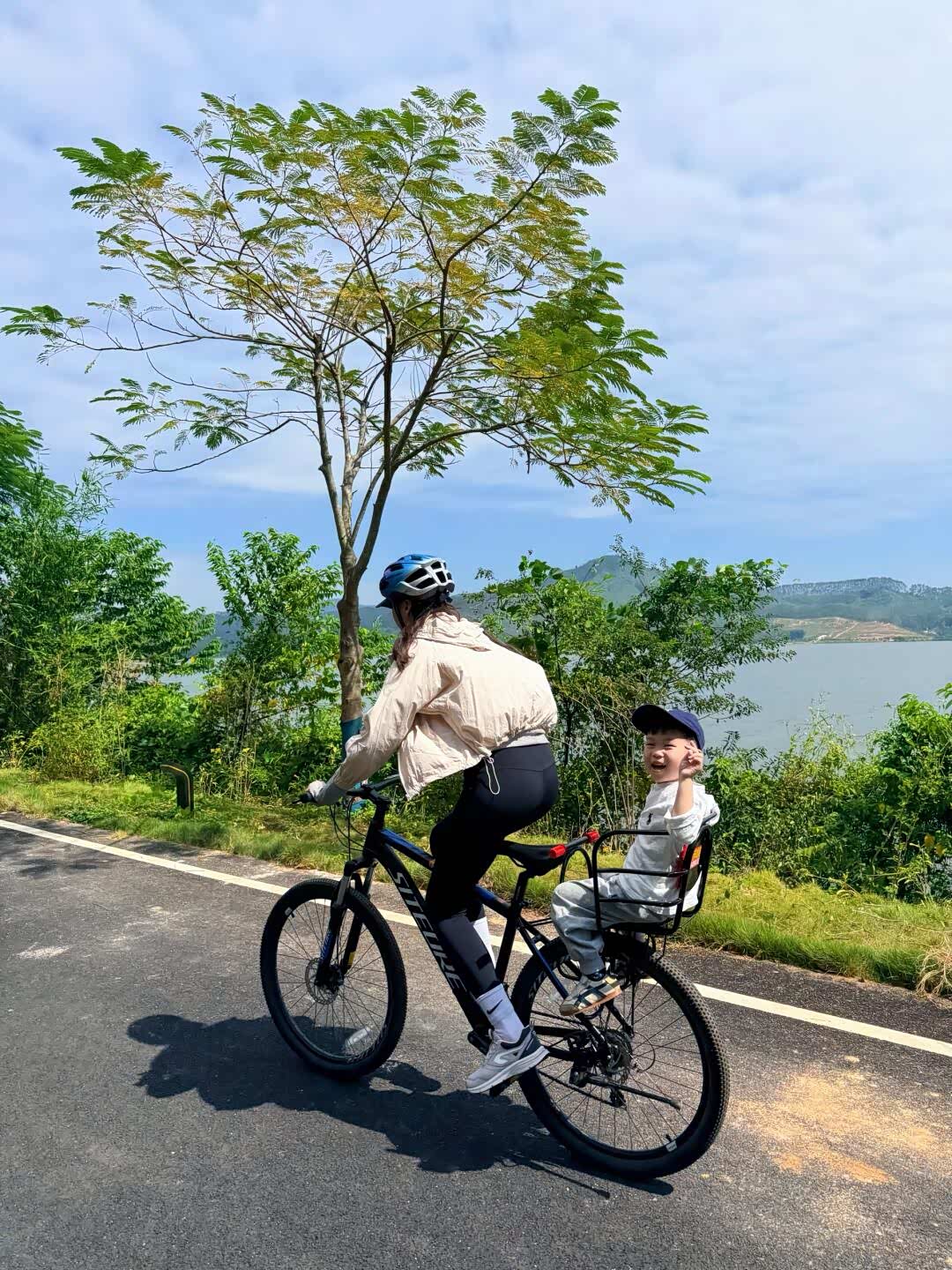 奕炫停在停车场很安全,后备箱里剩下的物品也不用担心丢失。骑行约5公里后,我们在一处观景台停下休息。这里视野开阔,能俯瞰大片湖面,不少游客在此拍照打卡。女儿坐在观景台的长椅上,吃着小鱼干,看着湖面的游船,兴奋不已。休息片刻后,我们继续骑行,沿途遇到不少骑行爱好者和散步的家庭,大家笑着打招呼,氛围融洽。