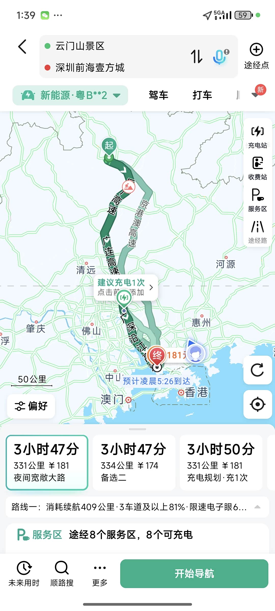 路线:显岗水库——罗浮大道——广惠高速——三环南路——惠城区万科金域华庭,全程约56公里,耗时约1小时20分钟。傍晚看完日落出发,避开了返程高峰,路上车流平缓,到家后还能从容准备晚餐。