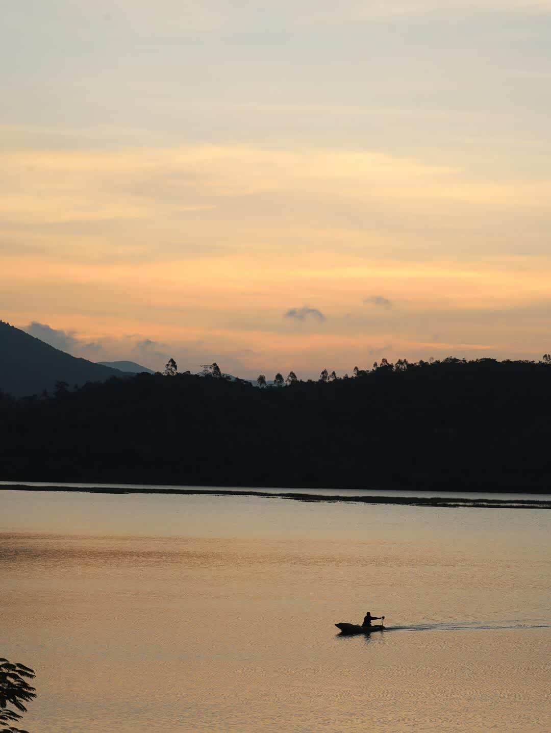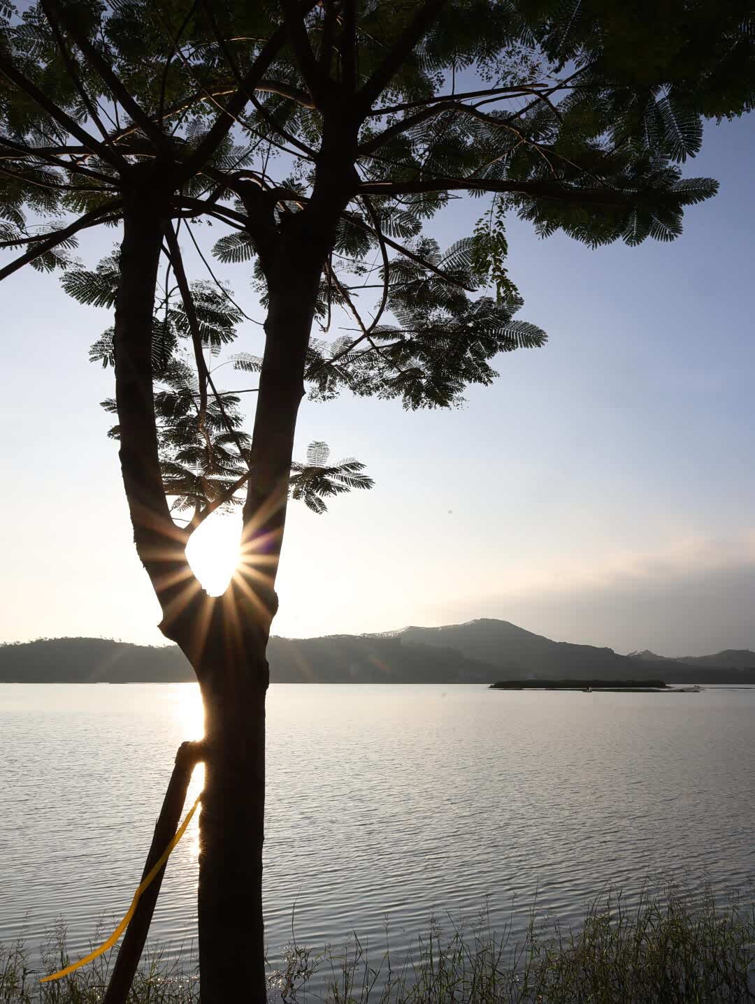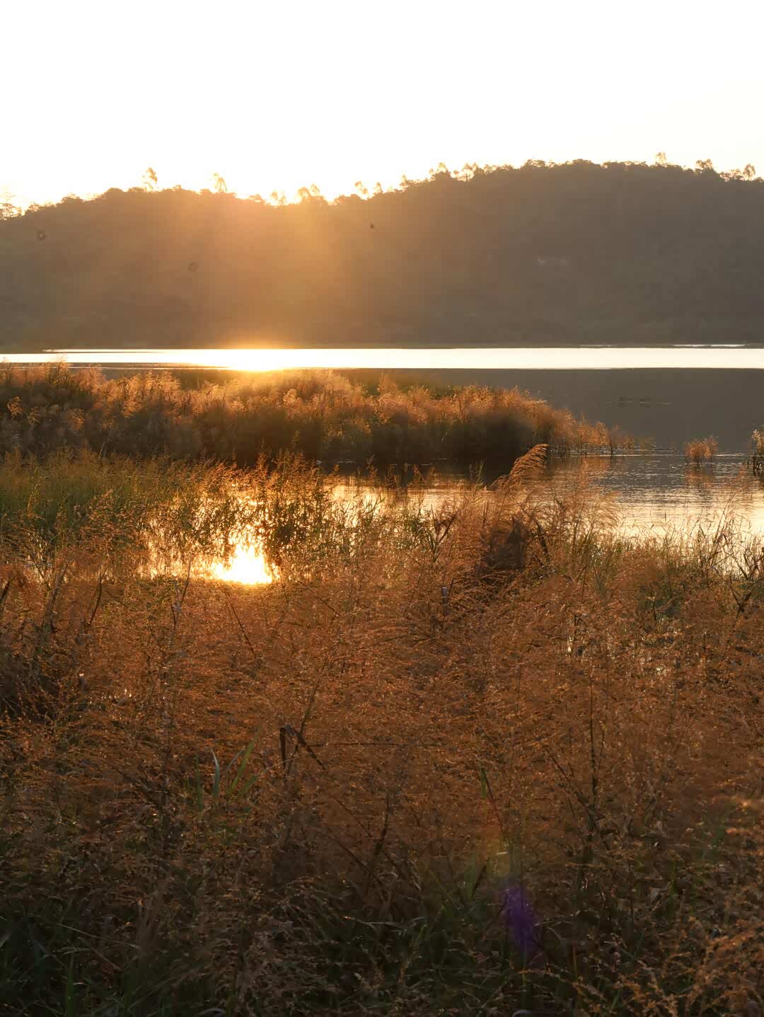 下午5点左右,我们返回停车场,收起自行车,准备前往日落观景点。夕阳西下,我们驱车来到水库西岸的观景台,此时天空被染成暖黄色,夕阳的余晖洒在湖面上,波光粼粼,美不胜收。孩子们坐在观景台的石阶上,目不转睛地看着日落,儿子说这是他见过最美的夕阳。