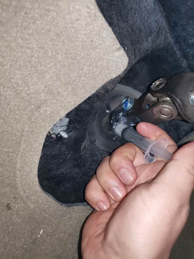 主要是躲开方向柱那螺丝,再在方向柱转过来这侧按“上、中、下”位置注入。