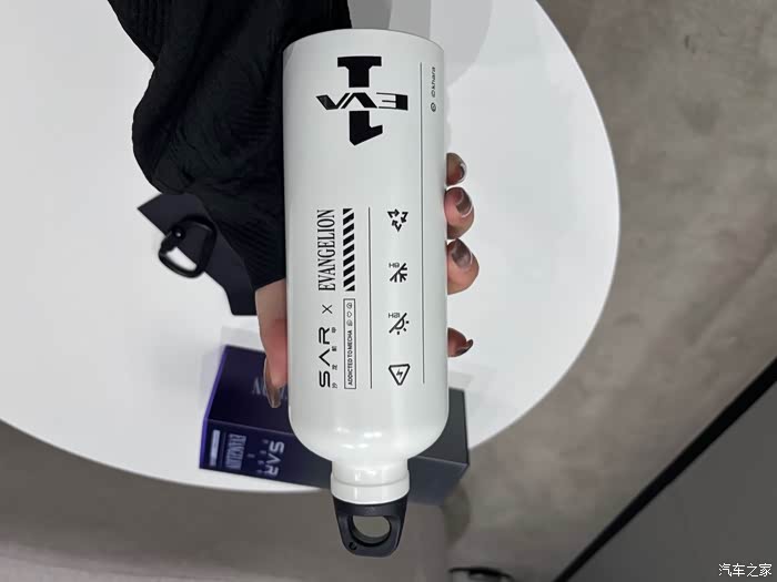 从外观来看整个杯子还是很精致的,白色的杯体上印着SAR的缩写以及EVA的全名,搭配各种标识,显得很有未来机甲的感觉。下面我给大家展示一下