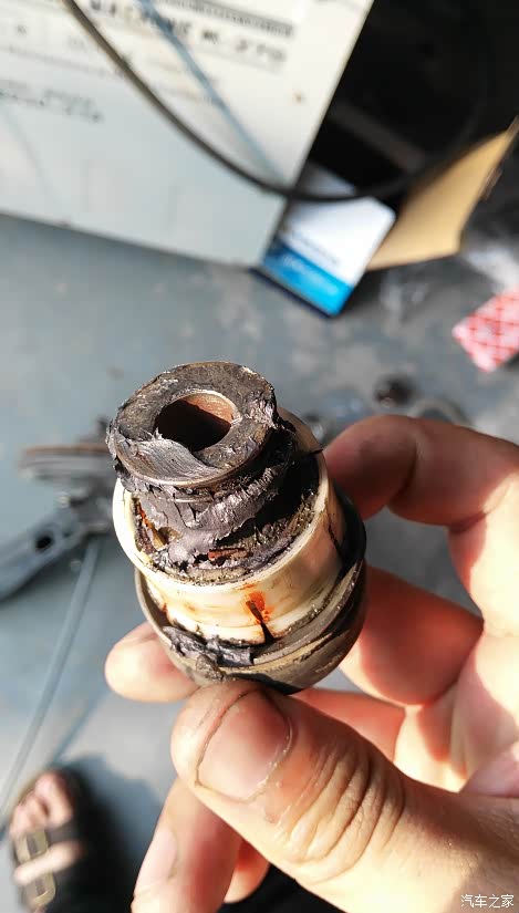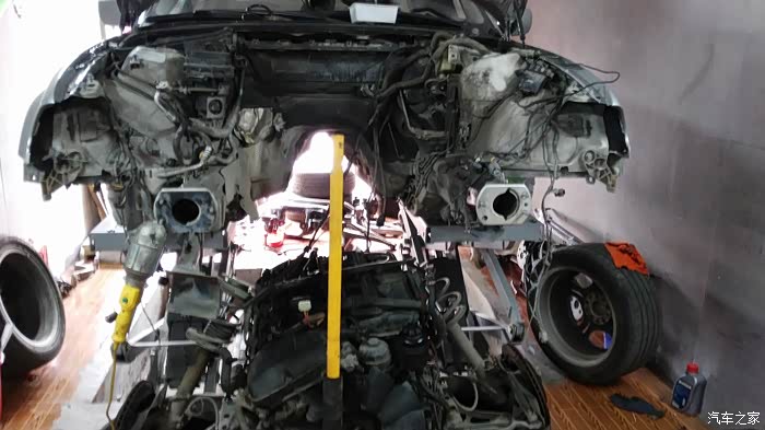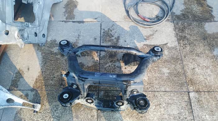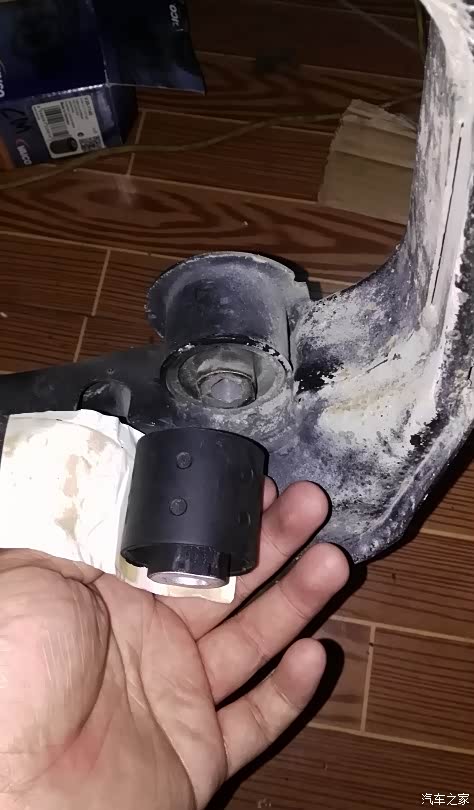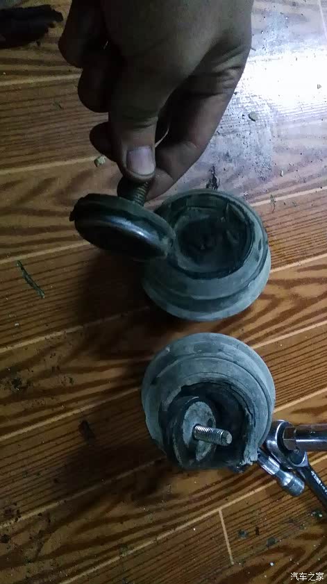 拆前面元宝梁的时候发现原车机脚胶居然已经完全分体了,也不知道前车主怎么开的,居然没事。福大命大。