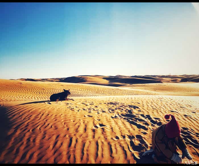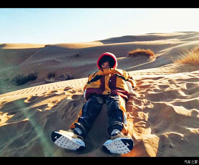 沙漠里并不冷,和北京的温度差不多,白天基本很暖和,整个沙漠就只有我们一家子,是不是特别酷!