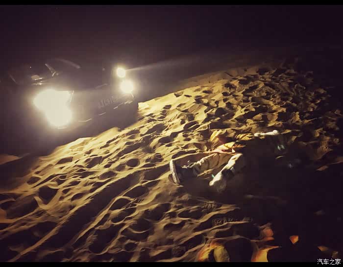 最后脱困是因为沙地模式开启加上脱困装备,全家都挖沙子挖半天,但是脱困以后天色真的是已经很晚了,根本无法返航回酒店,只能在沙漠里仰望星空了。此时赶紧去砍柴生火吧!农村出生的我,对于夜晚低温还是很有办法的!