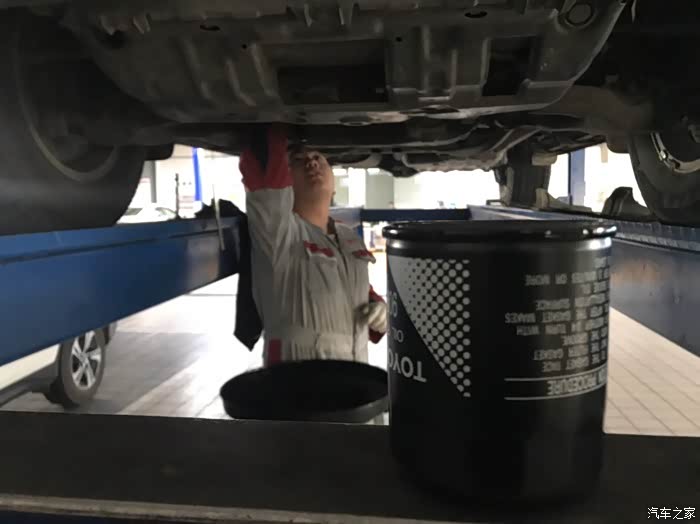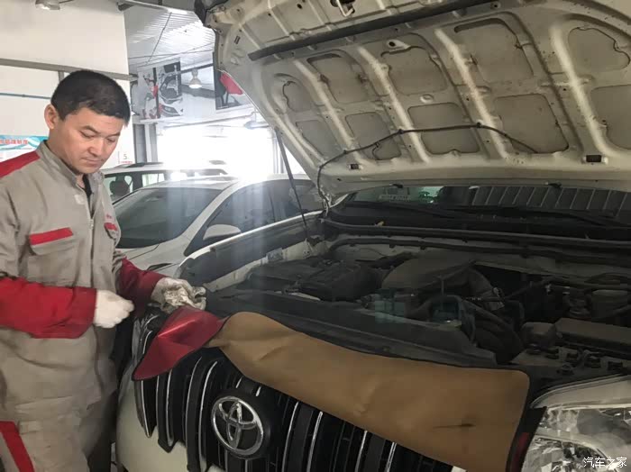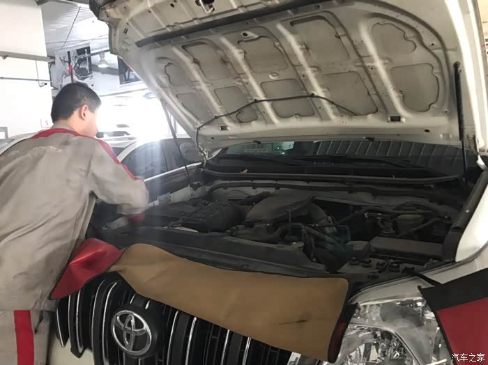 今天受女性朋友委托,去给她的普拉多去做预约小保养。车是2015年1月上牌的。目前47000公里。第7次保养。周期7000公里一次。首保是3000公里时候做的。常规小保养,机油、机滤。另外,原厂的空气滤芯、空调滤芯两只连工时费近600块钱,我没给换,清理了一下又装车了。