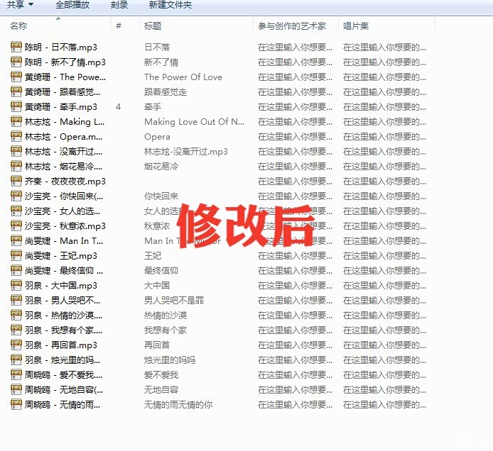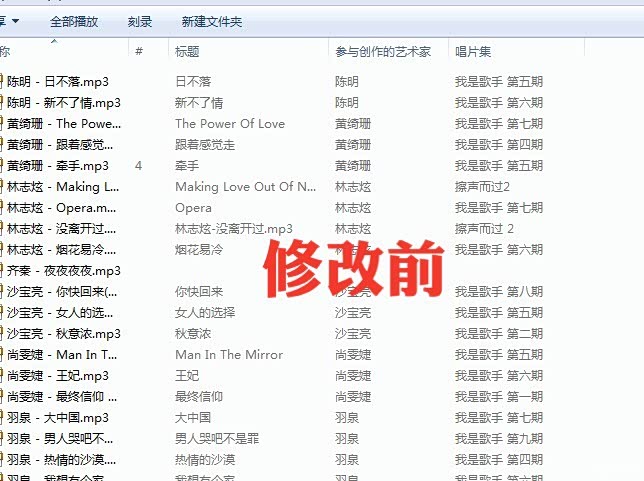 在修改信息前,需要把自己准备好的歌曲进行分类,比如XX歌手的专辑或者XX类型的音乐放入专用的一个文件夹内