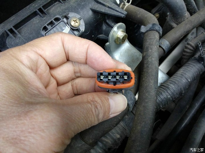 下图就是风云2的进气温度压力传感器。风云2的进气温度和压力传感器是做在一起的。下手前漏拍全景图了,用这张顶上了。