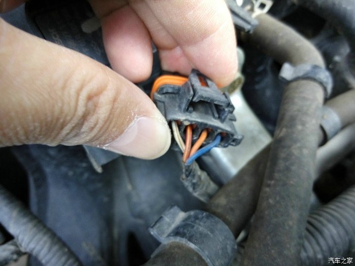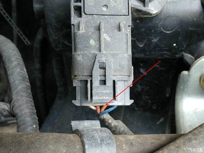 我们要下手的就是这根线,在这根线上串联一个电阻,使电脑得到一个气温比实际气温低的信号,从而发出比原来设定值大的喷油量。