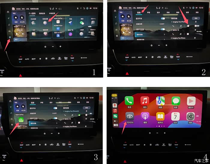 这里作一个无线CARPLAY的简单步骤指引截图,如果你觉得原车车载导航不好用的话,就可以用手机导航投屏,抬头显示也有配合,跟原车车载的一样。