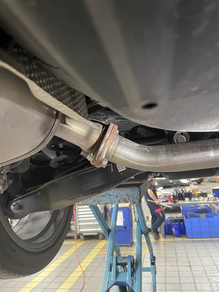 开了2个月的九凯这个连接排气管的法兰盘都生锈了。
