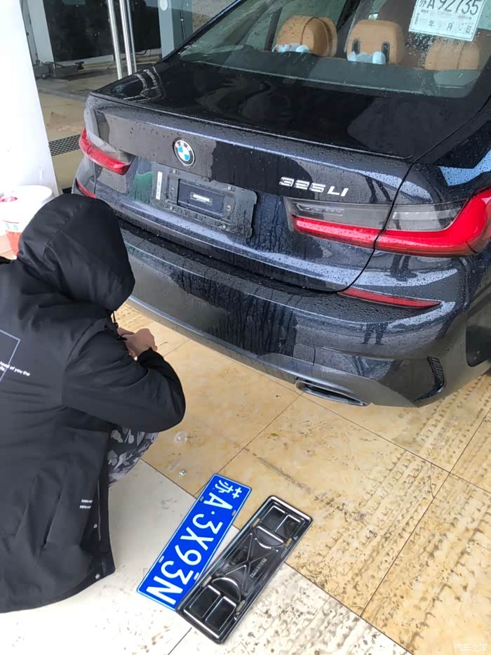 这里有个小插曲,因为之前把华晨宝马四个字抠了,而且字也扔了,上牌现场不给上。跑去店里拿了一副过来,到车管所居然莫名其妙不见了个“宝”字,欲哭无泪。然后又跟一个朋友联系,他的改装(汽美)店里有客户不要的字,然后拿了一副过来,一上午加上忙到下午两点多才终于把车牌拿到。