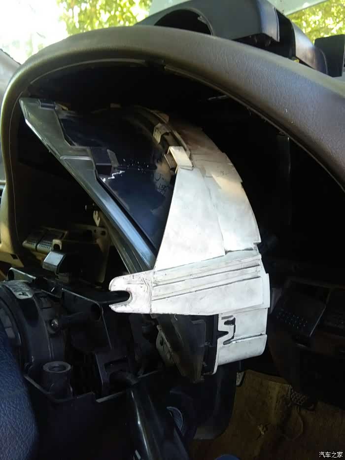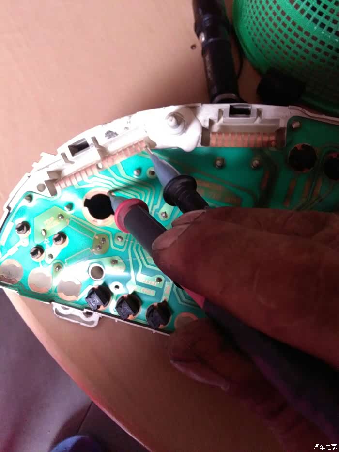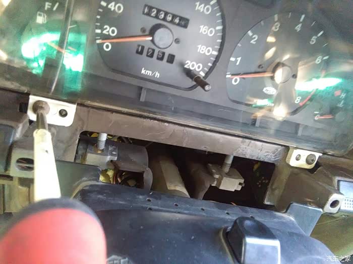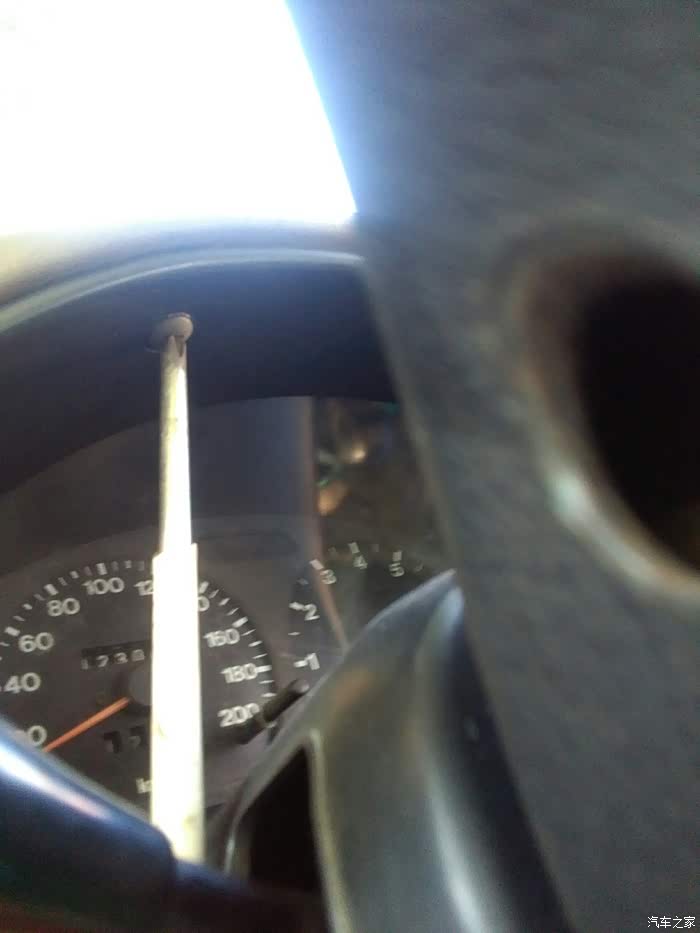 要把仪表打侧点,还要有点暴力才能把它拆出来,这时要小心仪表背面有三个插头连线和里表线,别把插头线拉脱哦
