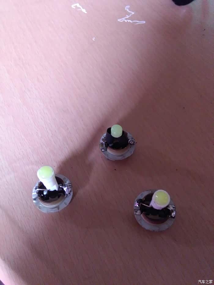 夜间开车如果仪表台照明灯不亮心里好像没底一样,于是前段时间查阅了下过贴子还真有一贴,学习了,就上马老板家花了十元钱淘了几个LED灯想换上去,因三个照明灯已经烧坏两个了,晚上看不清油表和水温,这几天上中班早上有空就换上,因为没读过什么书,又是第一次发这样的贴,所以有些混乱请各位谅解,不喜欢就上砖哈,好了上图: