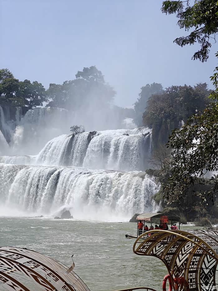 下午:游览德天瀑布,乘坐竹筏近距离感受瀑布的震撼,拍摄瀑布美景。
