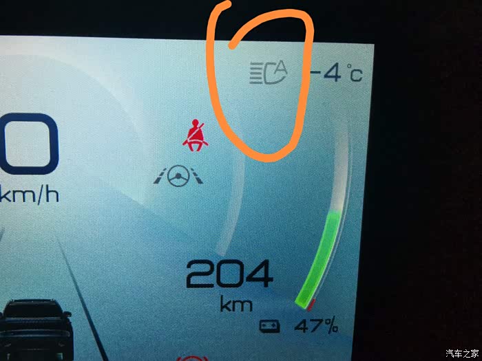 元plus仪表盘,右上角的自动大灯图标,变橙色代表什么意思?