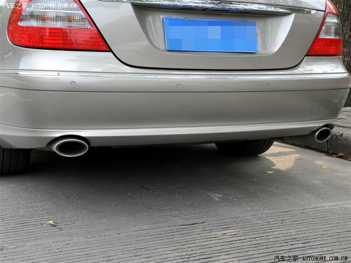 双边双出的排气管,挺好看的。奔驰的倒车雷达太难用了,很近很近大概20cm才叫,很吓人!!!