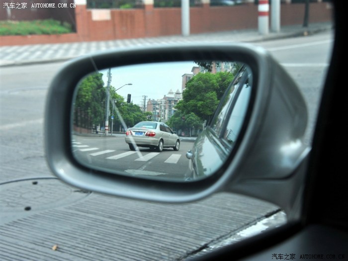 后视镜的视野不算大,其中左边的镜子带自动防眩目,右边的不带。后视镜可以电动折叠,也可以锁车时自动折叠。